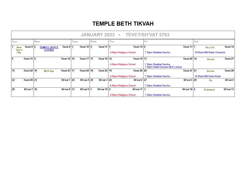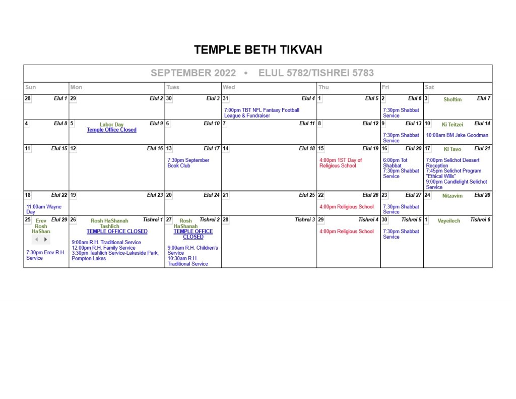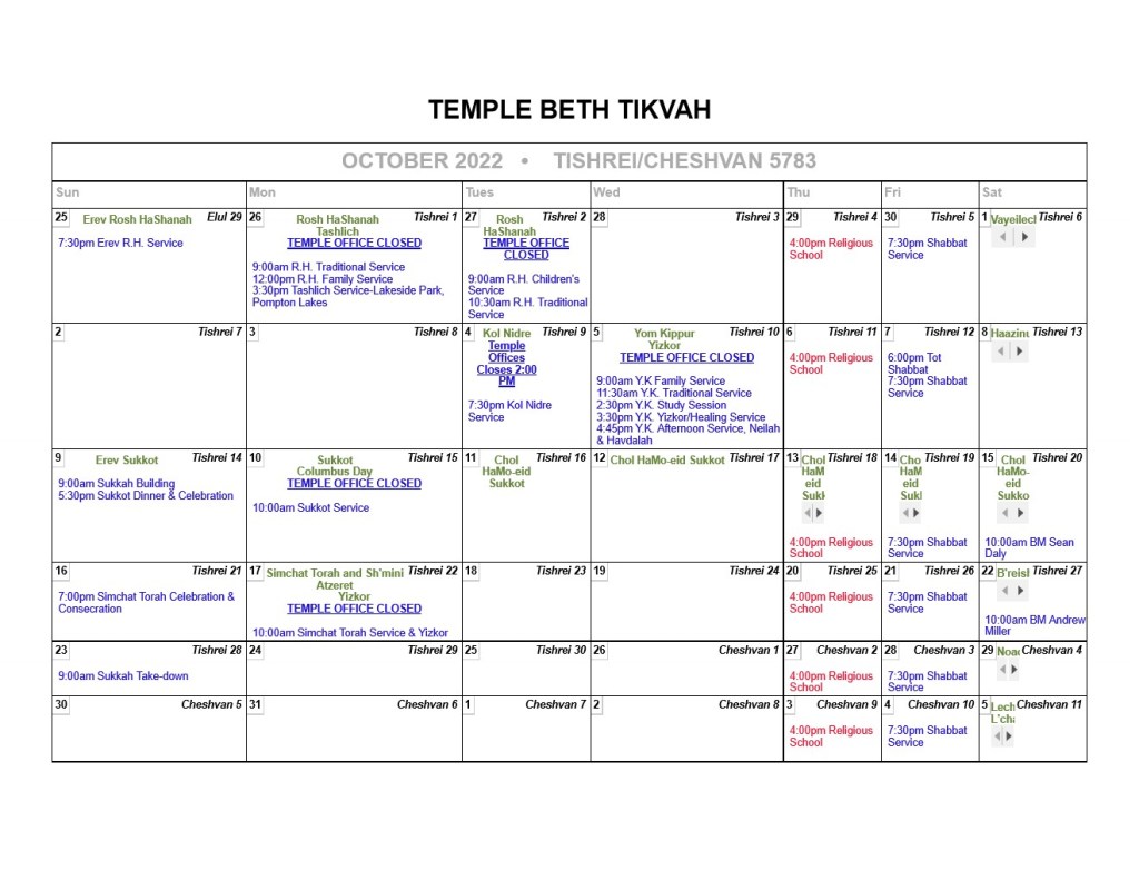 Members: Please see the most up to date Calendar on the ShulCloud website.